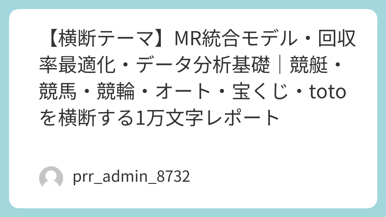 競艇・競馬・競輪・オート・宝くじ・totoは、表面的には異なる競技だが、数値分析の観点から見ると同じ構造を持つ。MR統合モデルは、これらを横断して分析するための普遍的なフレームワークで