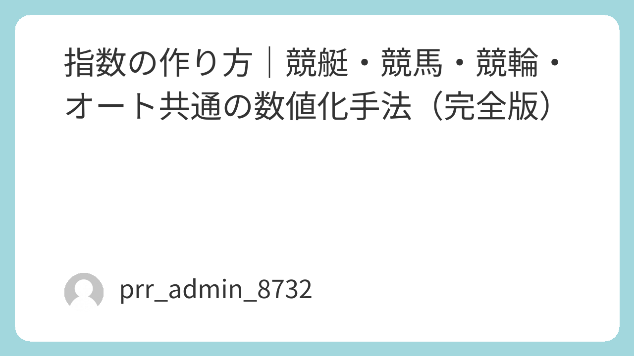 本記事では、6競技を横断して分析するための「MR(Mixed Rating:混合レーティング)」を体系化し、回収率を最大化するためのデータ分析基礎を1万文字でまとめる。特定の競技に依存しない、普遍的な予測モデルを構築することが目的である。