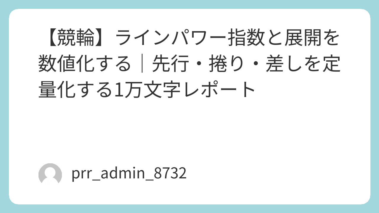 本稿は、先行力、捲り力、差し力、番手力、ライン結束度、バンク特性、風向き、選手の近況指数などを統合し、競輪の展開を定量化することを目的とする。特定の選手やレースを推奨するものではなく、あくまで数値的な予測手法を体系化したものである。
