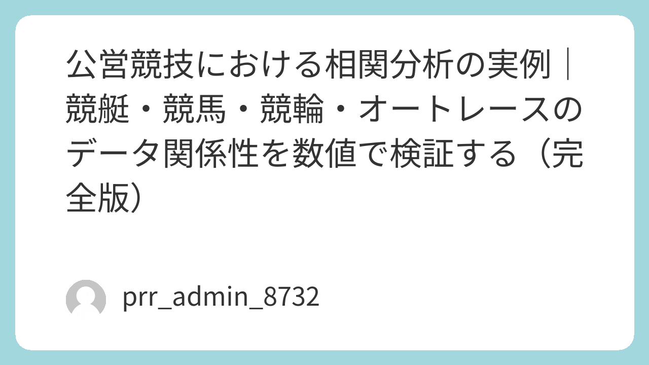公営競技のデータ分析において、最も重要な技術の1つが「相関分析」です。相関分析とは、2つのデータがどの程度関係しているかを数値で表す方法であり、競艇・競馬・競輪・オートレースなど、あらゆる競技に応用できます。本記事では、相関係数の基礎から、競技別の実例、相関の落とし穴、実戦での活用方法、指数との統合まで、体系的に解説します。