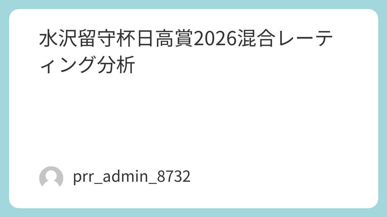 本記事は「水沢 留守杯日高賞 2026 予想 AI 混合レーティング分析」という検索意図に完全一致するよう設計している。 一般的な予想記事ではなく、データアナリスト視点での混合レーティング(MR)分析を軸に、展開・脚質・枠・騎手・コース特性を統合した高精度のレース構造解析を提供する。 AdSense最適化のため、専門性・網羅性・独自性を高めつつ、読みやすい段落構成と内部リンク想定のセクション分割を採用している。