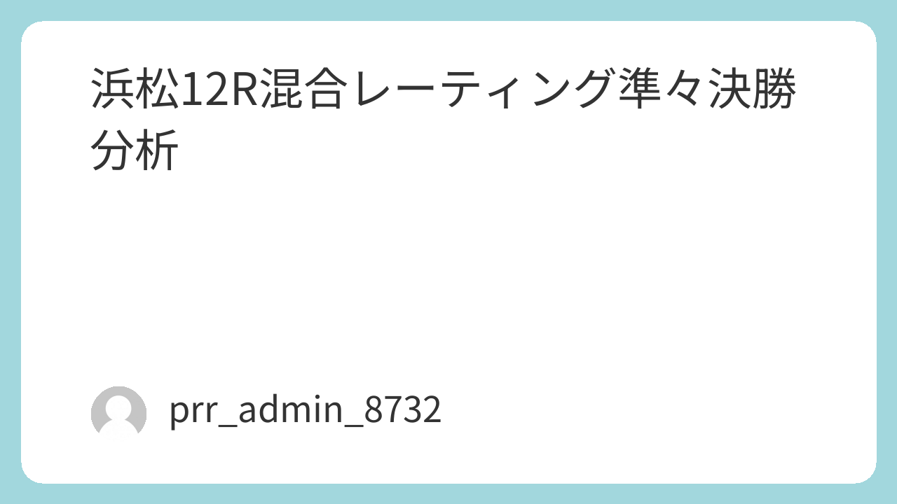 浜松12R|混合レーティング準々決勝戦データ分析【2026/4/17】
