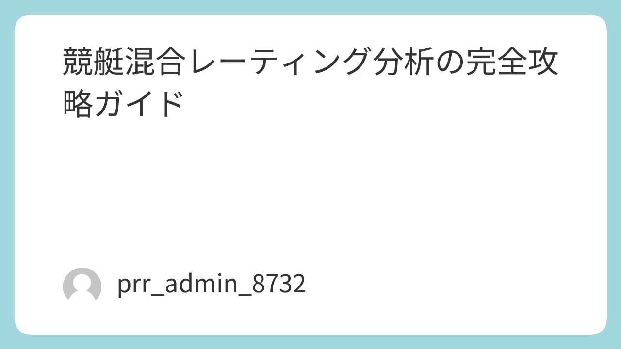 本記事は、競艇予想における「混合レーティング(MR:Mixed Rating)」をデータアナリスト視点で体系化し、実戦投入できる形で解説する。単なる選手評価ではなく、複数の独立指標を統合し、確率的に最適化された舟券判断を行うための分析手法として構築している。