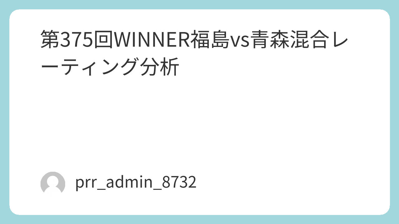 第375回WINNER「福島 vs 青森」は、勝敗が福島に大きく傾いているため、スコア帯選択が勝負の分岐点となる。 混合レーティング分析・過去対戦・頻度・オッズを統合すると、最適解は7〜19点差の中間帯に収束する。
