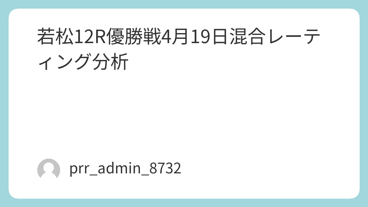 【若松12R|4月19日|優勝戦】混合レーティング分析|データアナリスト視点の完全解析