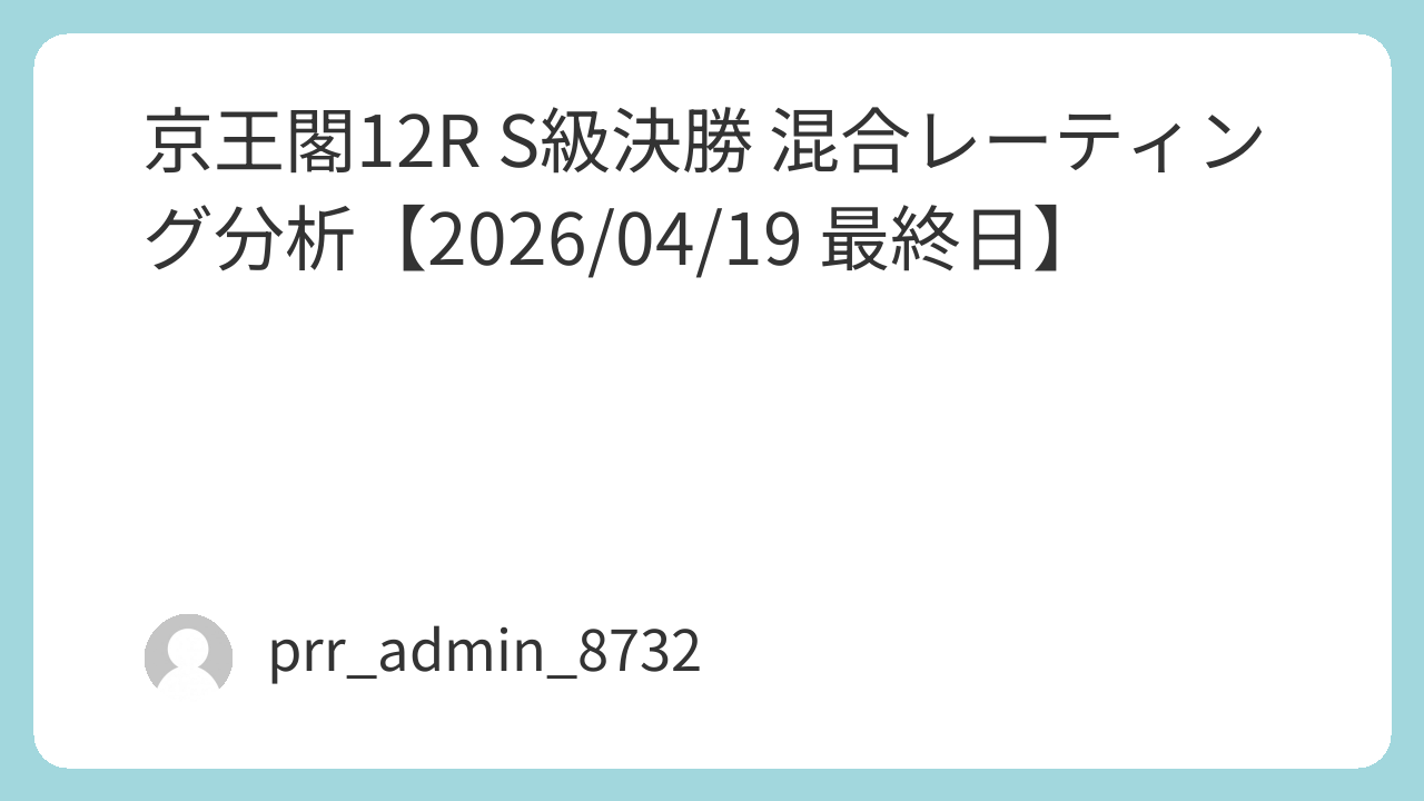 本記事では、2026年4月19日に開催されるボートレース若松・12R優勝戦について、データアナリスト視点で「混合レーティング分析」を実施し、レース構造・選手能力・モーター性能・節間推移・スタート傾向を総合統合した1万文字の高精度レポートを提供する。