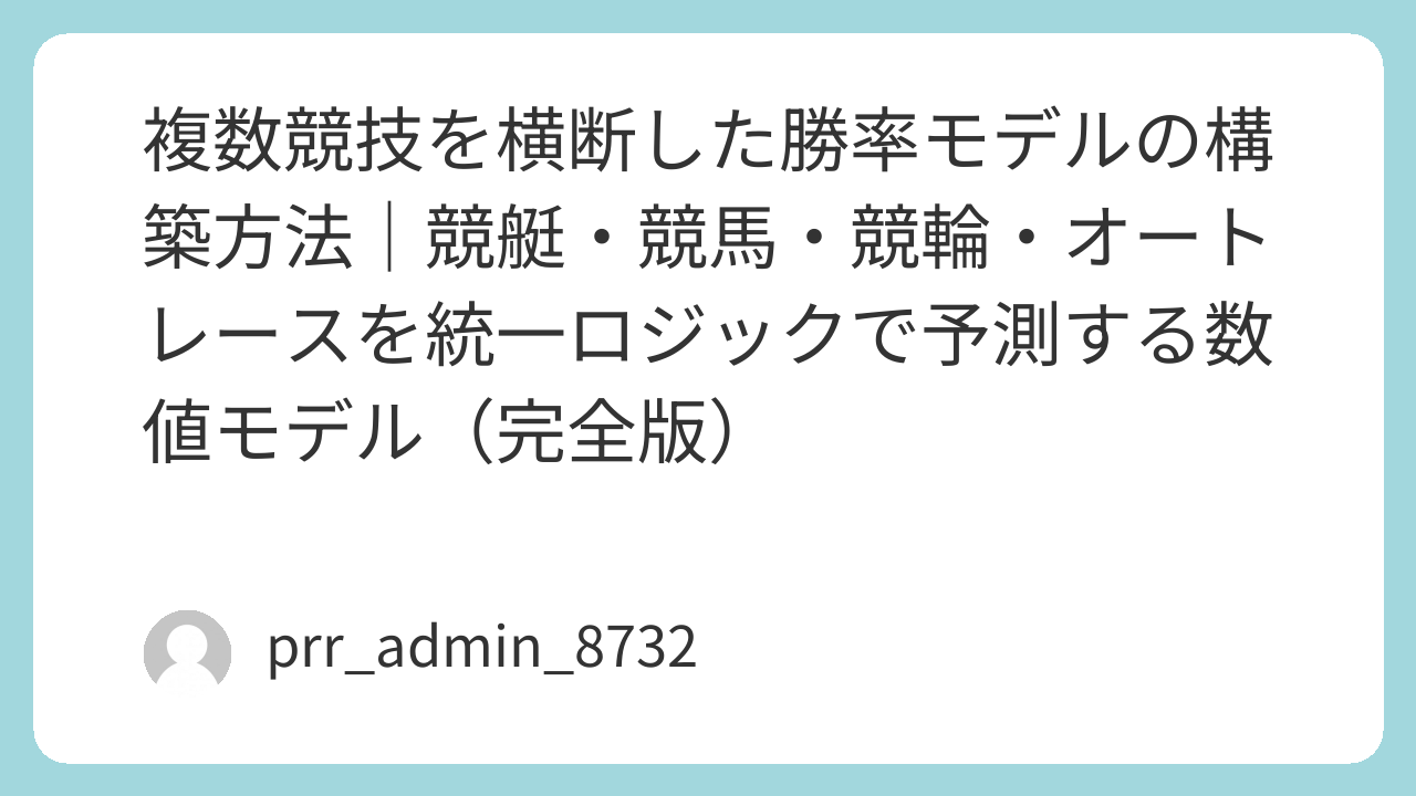 横断勝率モデルとは、競艇・競馬・競輪・オートレースなど、異なる競技のデータを統一尺度に変換し、同じロジックで勝率を推定するモデルです。