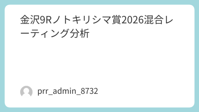 2026年4月19日(日)金沢競馬場で行われる「ノトキリシマ賞(3歳牝馬・1500m)」について、混合レーティング分析(MR)を軸に、データアナリスト視点で徹底解説する。本記事は検索意図「金沢 ノトキリシマ賞 予想」「金沢9R 2026 4...