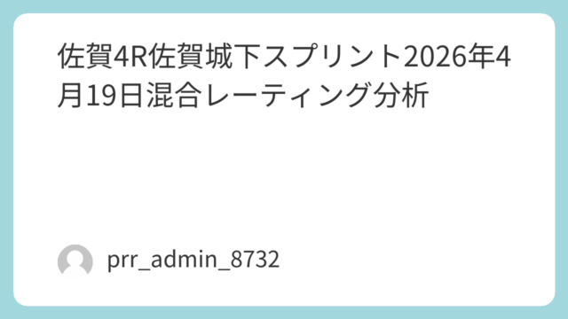 佐賀4R 佐賀城下スプリント(2026年4月19日)混合レーティング分析本稿では、2026年4月19日(日)に佐賀競馬場で行われる「佐賀4R 佐賀城下スプリント(3歳オープン・ダ1300m)」を対象に、データアナリスト視点による混合レーティ...
