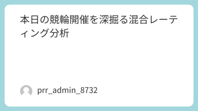 競輪 本日の競輪開催を深掘る混合レーティング分析 本記事では、本日の競輪開催を対象に、独自の「混合レーティング分析」を用いて、各開催場の傾向・レース構造・選手力学を総合評価する。単なるオッズ依存ではなく、選手能力・展開耐性・バンク特性・開催グレード・直近流れを統合した多層モデルにより、より... 2026.04.10 競輪資金戦略