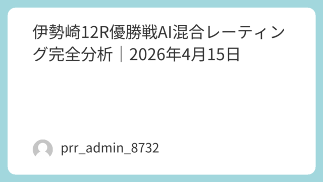 2026年4月16日(木)浜松オート初日12R〈予選〉の出走表をもとに、混合レーティング分析・近況指数・展開モデル・機力評価・ハンデ構造解析を統合した高精度レポートを作成しました。本記事は、オートレース予想における「情報の非対称性」を解消し...