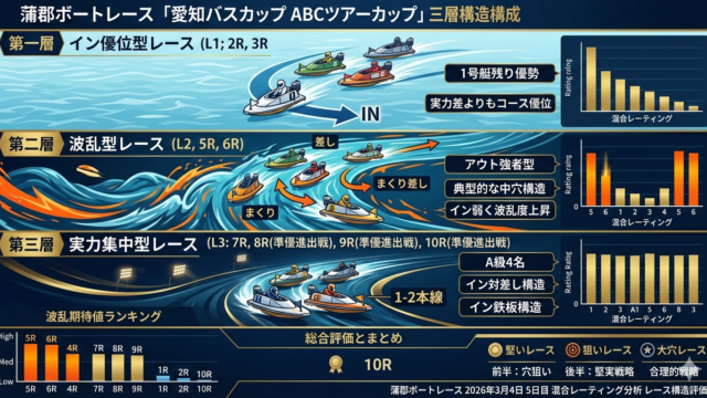 混合レーティング(R)に基づくA1級レーサーの勝機決定要因と予選最終日の展開予測混合レーティング研究所 首席アナリスト分析実行日:2026年3月5日本論文の構成G1児島キングカップにおける「混合レーティング」の定義児島水面の物理的特性:イン...
