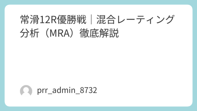 本記事では、ボートレース大村最終日12R優勝戦を対象に、混合レーティング分析(MRA)による構造的評価を行う。単なる数値比較や感覚的判断ではなく、「スタート精度」「機力評価」「節間の流れ」「コース特性」の4要素を統合し、勝敗の確率構造を明確...