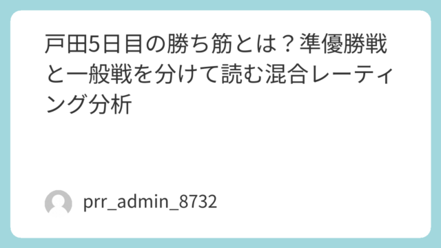 2026年4月1日、桐生競艇場で行われるドリーム戦は、A1級のみで構成されたハイレベル戦。一般的には「実力拮抗」と見られがちな一戦だが、混合レーティングの視点で分解すると、明確な“構造の偏り”が存在している。本記事では、単なる予想ではなく「...