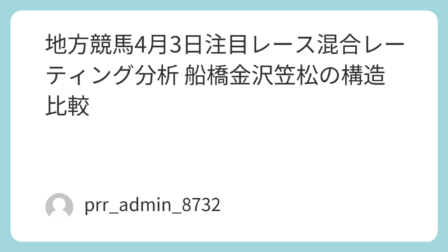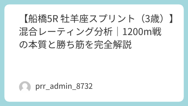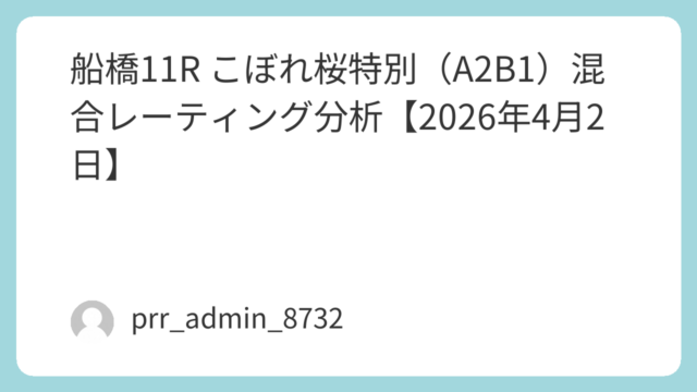船橋競馬3日目のメイン前哨戦とも言えるA2短距離戦「ダイヤモンドスプリント」。本記事では、混合レーティング(MR)・展開速度指数(PSI)・脚質適性値(LAI)・近走再現率(RR) を統合した独自モデルで、勝ち筋・危険人気馬・妙味ゾーン を...