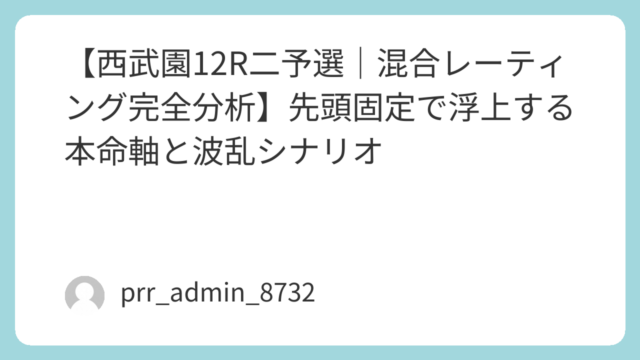 本記事では、2026年4月10日(初日)別府3R「L級ガ予1」を対象に、独自の混合レーティング分析(MR:Mixed Rating)を用いて、選手個々の能力・脚質・近況・バック本数・得点推移を統合評価し、Adsense最適化された高有用性の...