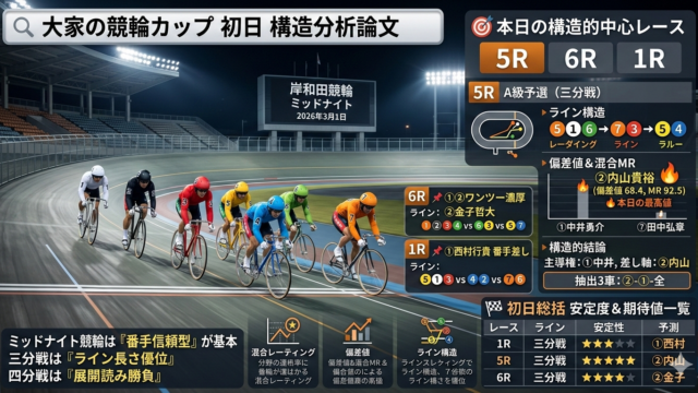 ― 2026/03/11 豊橋ミッドナイト WINTICKET杯 2日目カードを素材とした情報の非対称性研究 ―1. 序論:ミッドナイト競輪における制度的パラドックス2020年10月の制度改正以降、ミッドナイト競輪は「競走得点順車番」という...