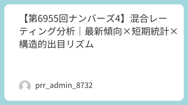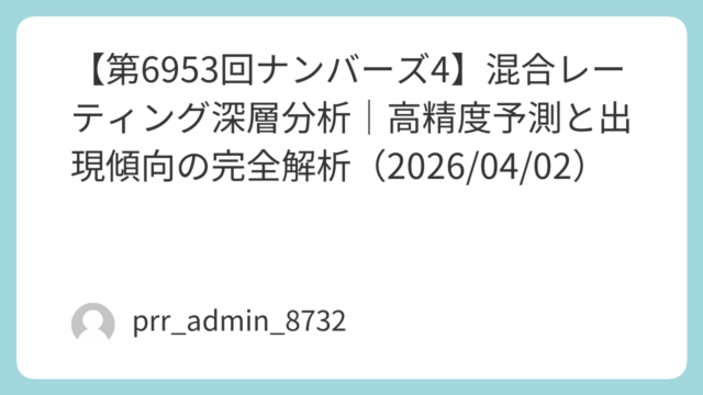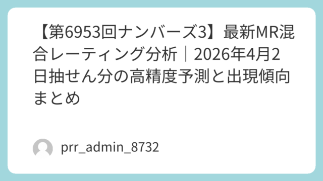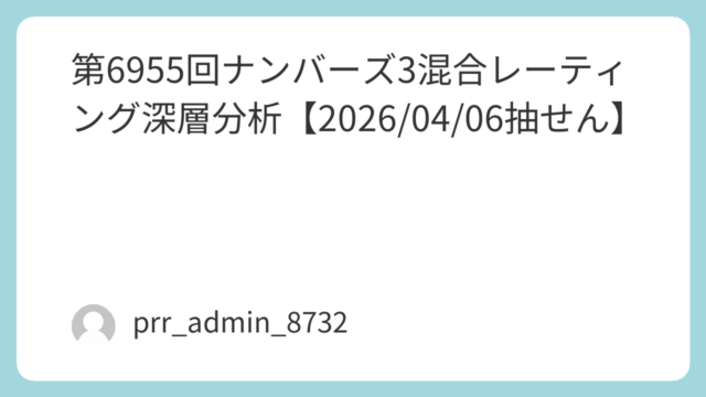 2026年4月7日(火)抽せんの第6956回ナンバーズ3について、直近データをもとにしたMR(Mixed Rating)分析を公開します。前回(6955回)は「881」。ダブル+高数字寄りという特徴的な流れが出ており、今回の6956回は“反...