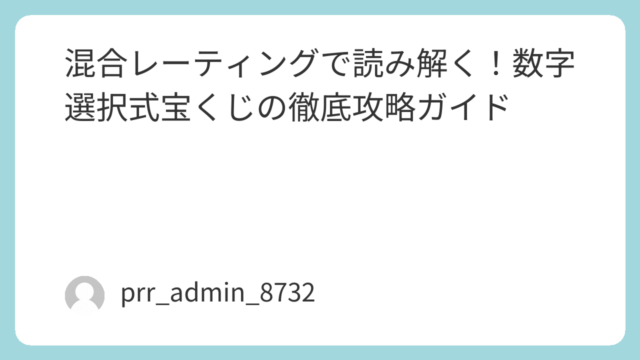 ミニロトにおける「混合レーティング分析」は、単純な出現頻度集計や直近傾向の追跡とは異なり、複数の統計指標を統合し、数字の“総合的な強度”を評価する手法である。本記事では、混合レーティングの構成要素、分析プロセス、実務的な活用方法、そして実際...