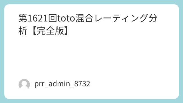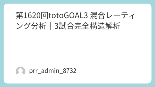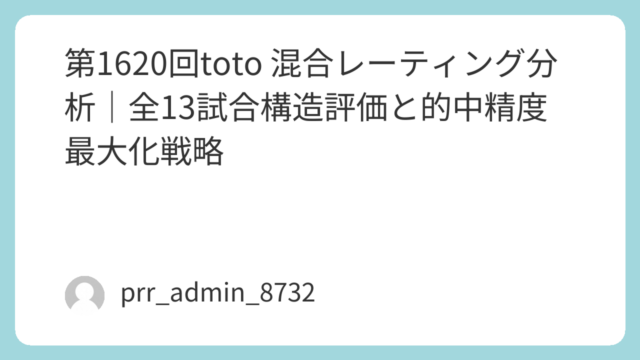 本記事では第1620回totoを対象に、混合レーティング(MRA:Mixed Rating Analysis)を用いた構造分析を行う。単なる戦力比較ではなく、チーム強度・ホームバイアス・日程負荷・戦術相性・市場オッズ歪みを統合し、「確率構造...
