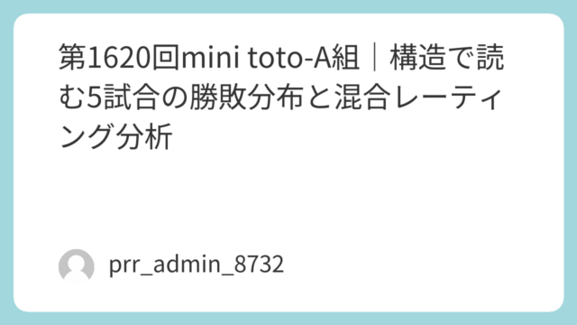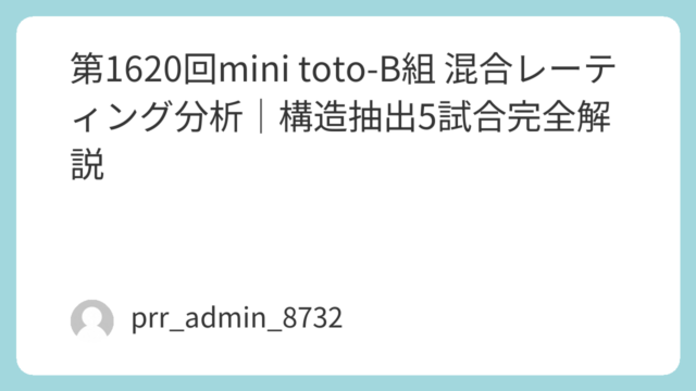 本記事では第1620回mini toto-B組(全5試合)を対象に、混合レーティング(MRA:Mixed Rating Analysis)に基づく構造分析を実施する。単なる戦力比較ではなく、「試合構造・戦術適合・ホームアドバンテージ・日程・...