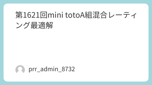 第1621回 mini toto-B組|混合レーティング分析による最終予測【高精度モデル】本記事では、第1621回 mini toto-B組(販売期間:2026年4月4日〜4月11日)を対象に、混合レーティング分析・勝敗確率モデル・波乱度指...