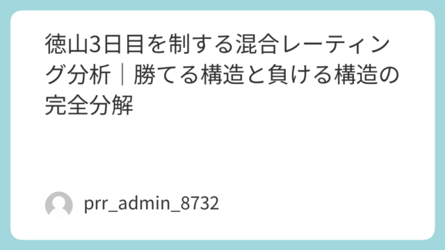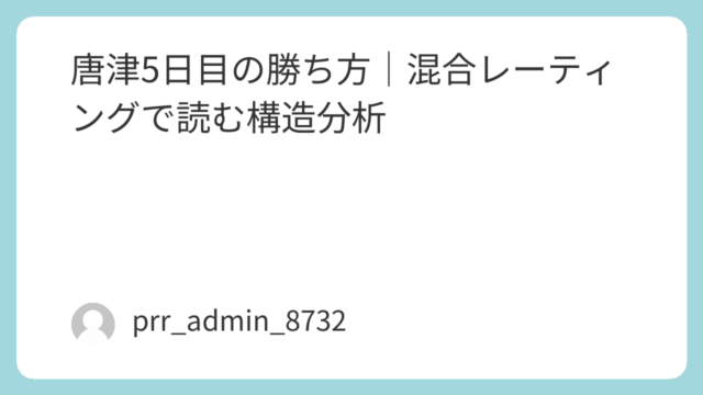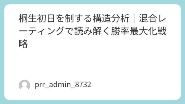 ボートレース桐生の初日は、データ分析において極めて重要な意味を持つ「構造が素直に現れる日」です。特に、経験や感覚に頼らず、数値と配置でレースを読み解く「混合レーティング分析(MRA)」においては、この初日こそが最も精度の高い判断を行えるタイ...