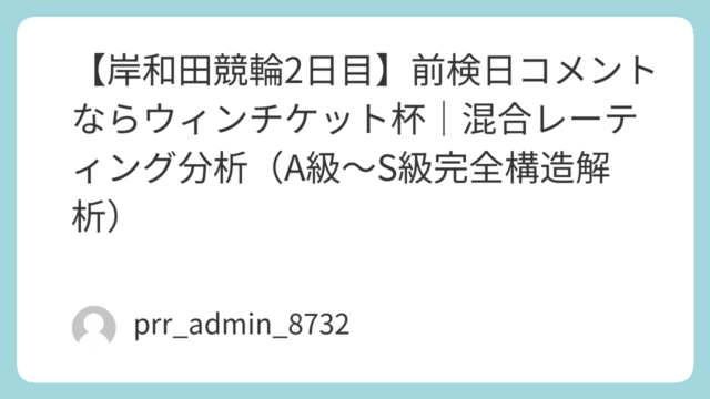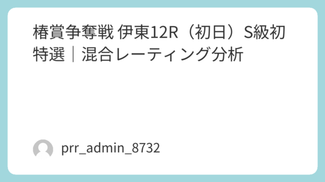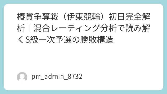 本記事では、静岡県伊東市にある伊東競輪場で開催される「椿賞争奪戦」初日5R(S級一予選)を対象に、混合レーティング(MRA)に基づいた構造分析を行う。単なる予想ではなく、ライン構造・脚質バランス・展開一致度といった複数要素を統合し、「どのラ...