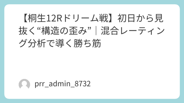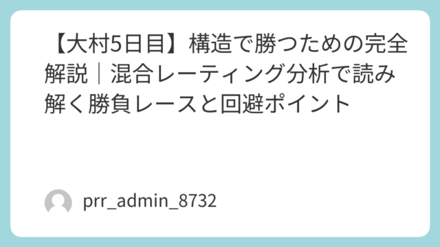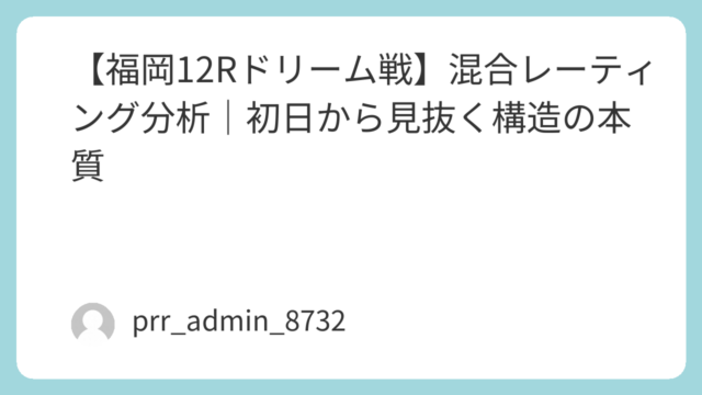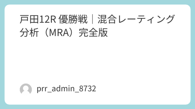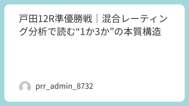 2026年4月2日、ボートレース戸田で行われる最終日12R優勝戦。本記事では、混合レーティング分析(MRA)に基づき、単なる印や感覚ではなく「構造」でレースを分解し、勝敗の本質に迫る。戸田水面は全国でも屈指の「イン受難水面」として知られ、1...