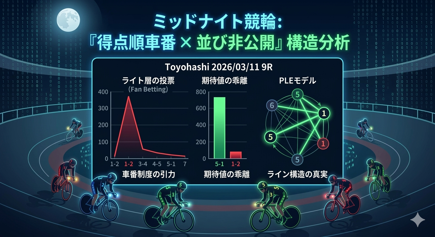 しかし、2026年3月11日の豊橋ミッドナイト競輪2日目カードに見られるような「並び予想非公開」という事態が重なったとき、このゲームは単なる「強者当て」から、極めて高度な「情報の非対称性」を突く知的ゲームへと変貌する。