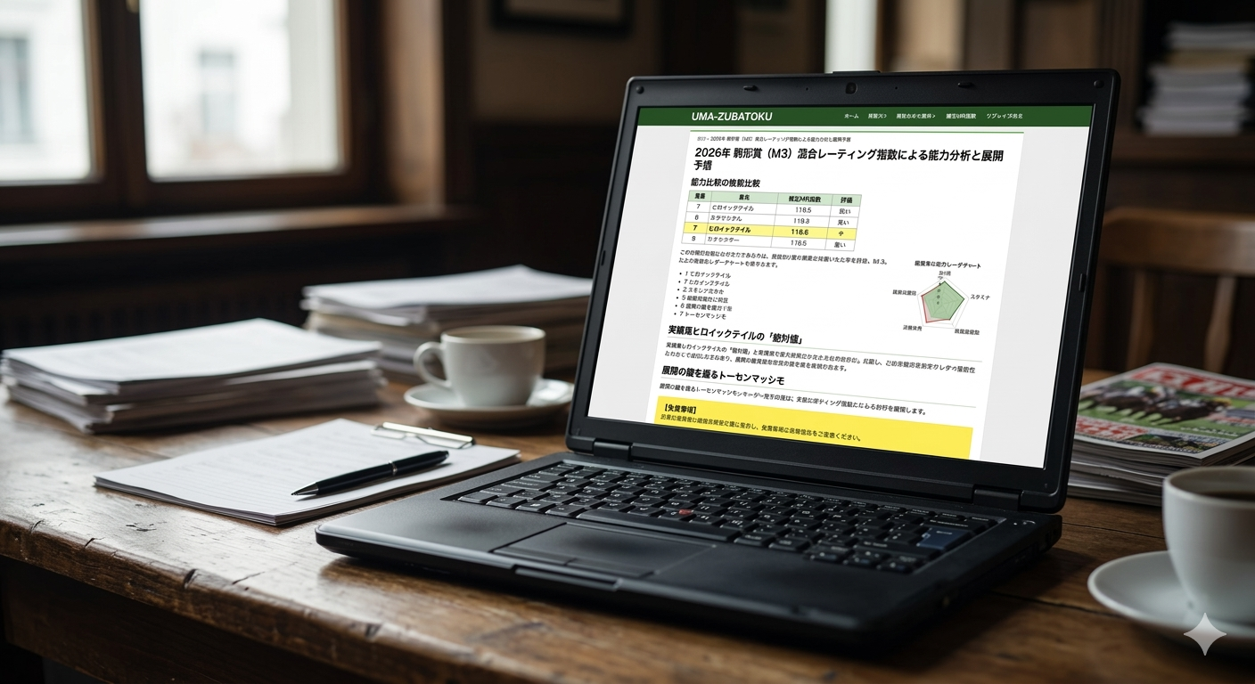 混合レーティングとは、過去の走破時計(タイム指数)に加え、対戦相手の質(レースレベル)、斤量増減によるパフォーマンス変化、そして水沢競馬場特有の「スパイラルカーブ」への適性を変数として組み込んだ独自の評価指標です。本論文では、このMRを基軸に、2500文字を超える圧倒的な情報量で各馬の勝機を深掘りします。