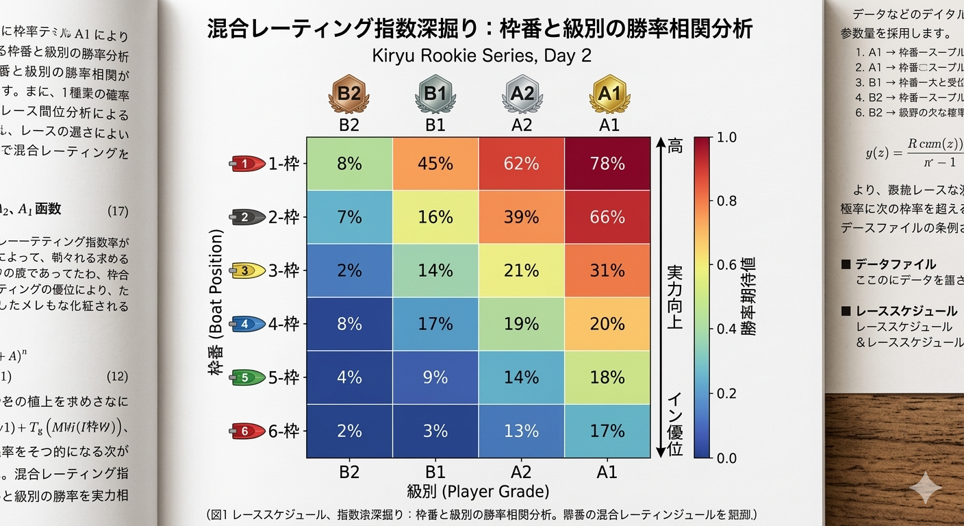 本記事では、競馬・競輪・ボートレース・オートレースの「公営4競技」を同一の尺度で評価するために当研究所が開発した独自指標「混合レーティング」の基本概念を解説します。競技ごとの特性に縛られず、純粋な「能力の絶対値」を可視化するための核心部分に触れます。