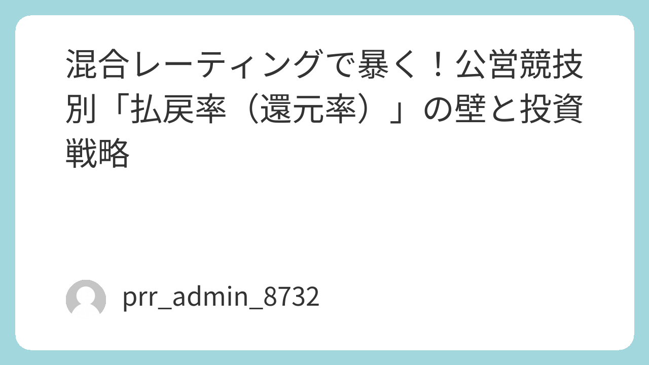 公営競技において、単なる「予想」を「投資」へと昇華させるために欠かせない概念が、混合レーティングと払戻率(還元率)の相関性です。