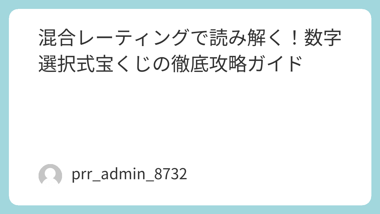 公営競技はギャンブルではなく、膨大なデータに基づいた「確率のゲーム」です。感情を排除し、この混合レーティングの基礎構造に則って数値を積み上げた者だけが、長期的な勝利を手にすることができます。