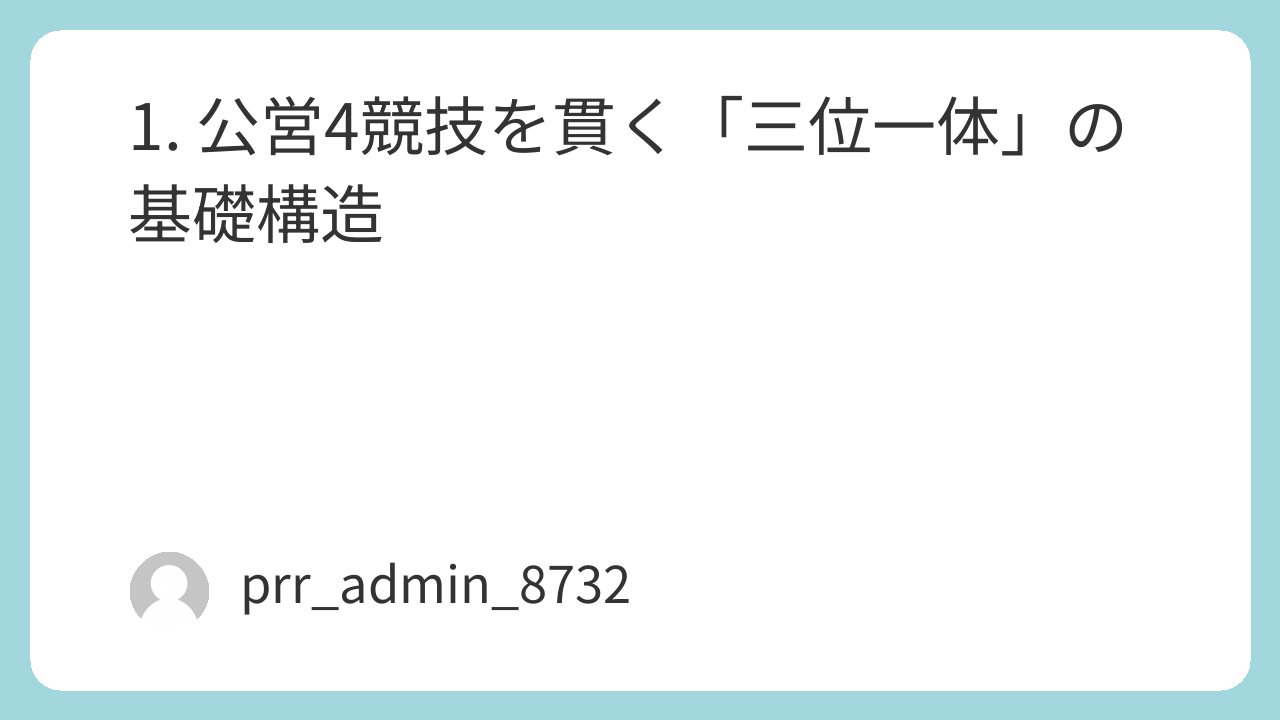 競艇、競輪、競馬、オートレース。これら公営4競技は、一見すると水上、バンク、芝・ダート、アスファルトと舞台もルールもバラバラに見えます。しかし、的中を導き出すための「数学的構造」は驚くほど共通しています。
