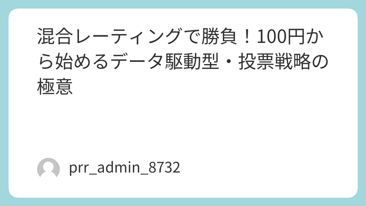 ブログやSNSで自らの買い目とレーティングを公開し、フィードバックを得ることで、分析の精度はさらに磨かれます。皆さんも、自分だけの「混合レーティング」を構築し、公営競技という広大な戦場で生き残りましょう。