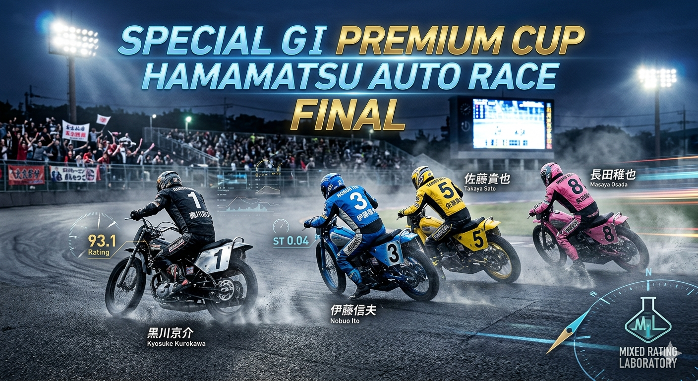こんにちは、混合レーティング研究所の「社長」です。いよいよ2026年3月22日、浜松オートレース場にて特別GⅠ共同通信社杯プレミアムカップの優勝戦が開催されます。今節の浜松は気温の変化が激しく、走路温度が刻一刻と変わる難解なコンディションとなりました。