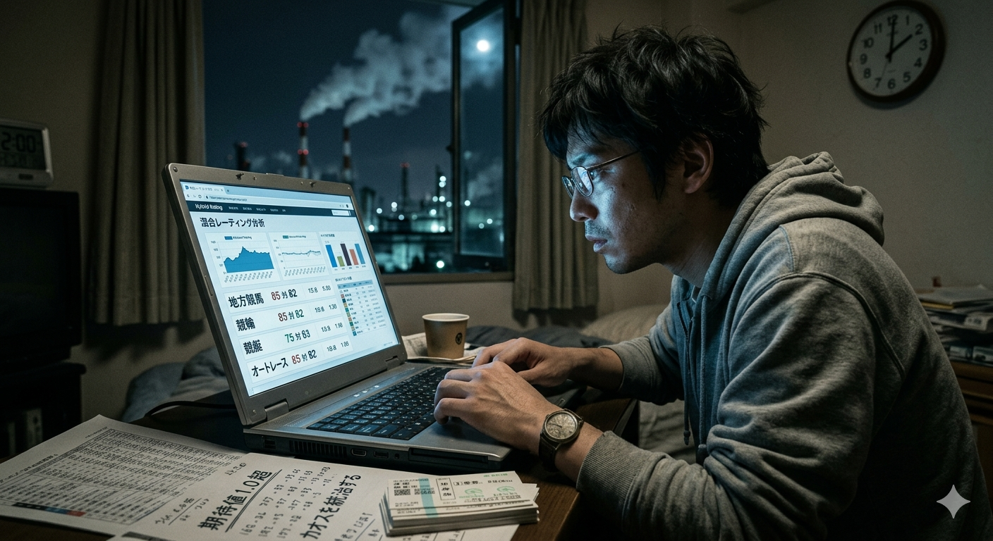 その日、彼が目をつけたのは、地方競馬と競輪のダブルヘッダーだった。混合レーティングの真骨頂は、競技の垣根を超えて「最も期待値の高い一点」を抽出することにある。