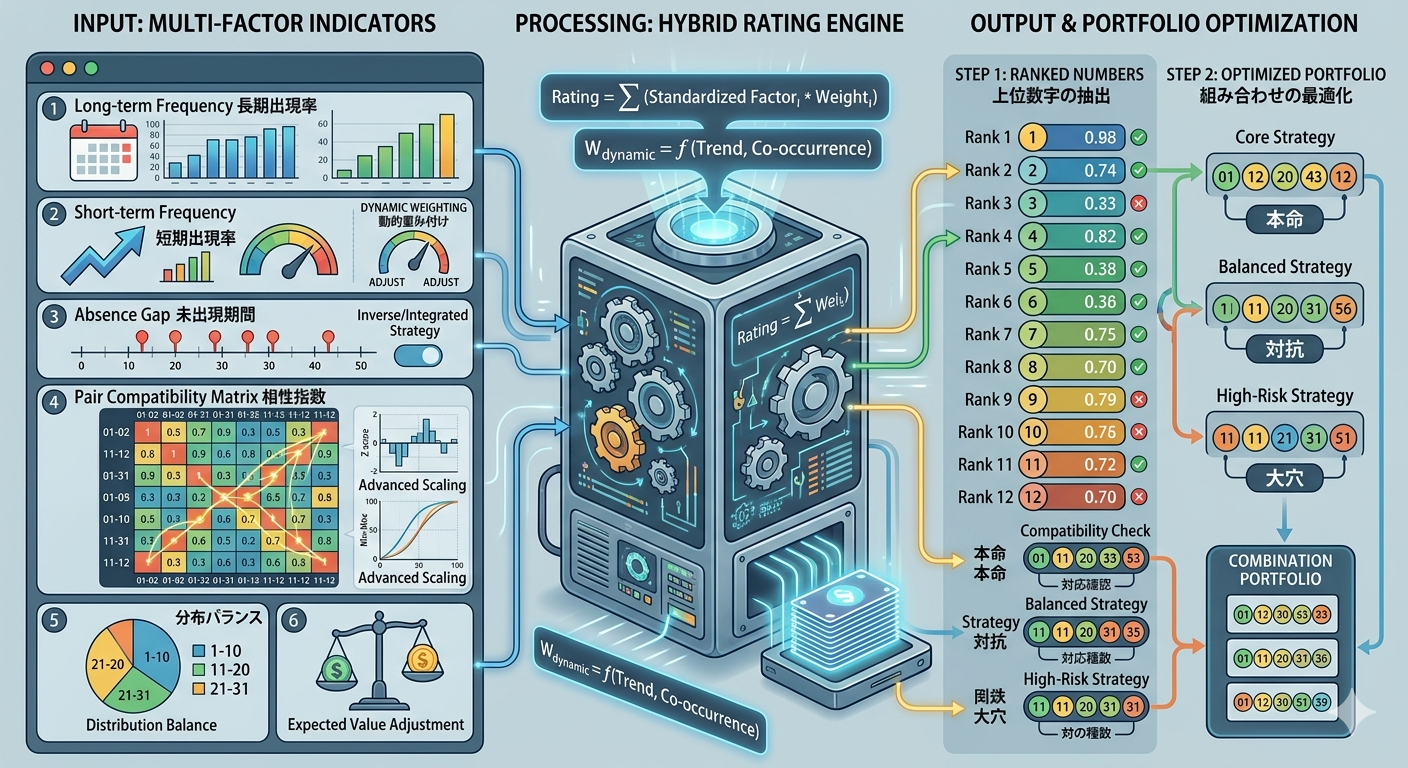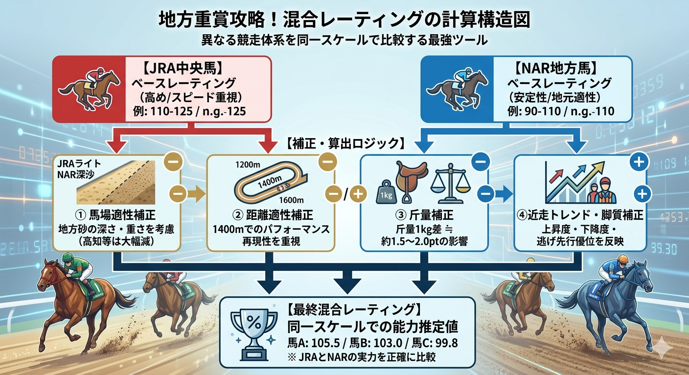 これらを統合した「Composite Rating(CR)」により、各レースの支配力・差し確率・波乱発生率を定量化する。