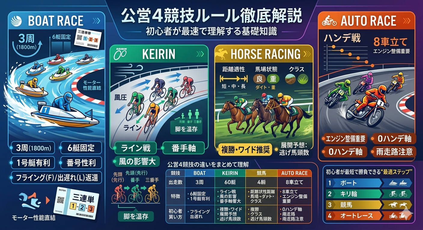 公営4競技の違いを徹底比較|還元率・当たりやすさ・初心者向けポイント