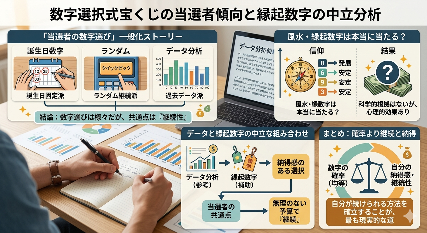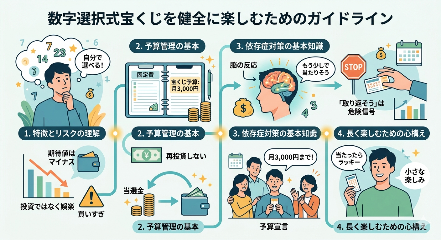 宝くじは「当たったらラッキー」という軽い気持ちで楽しむのが最も健全です。分析や予想を楽しむのは良いことですが、それが生活に影響を与えるほどのめり込むのは避けるべきです。予算管理と依存症対策を徹底することで、数字選択式宝くじは長く安全に楽しめる趣味になります。