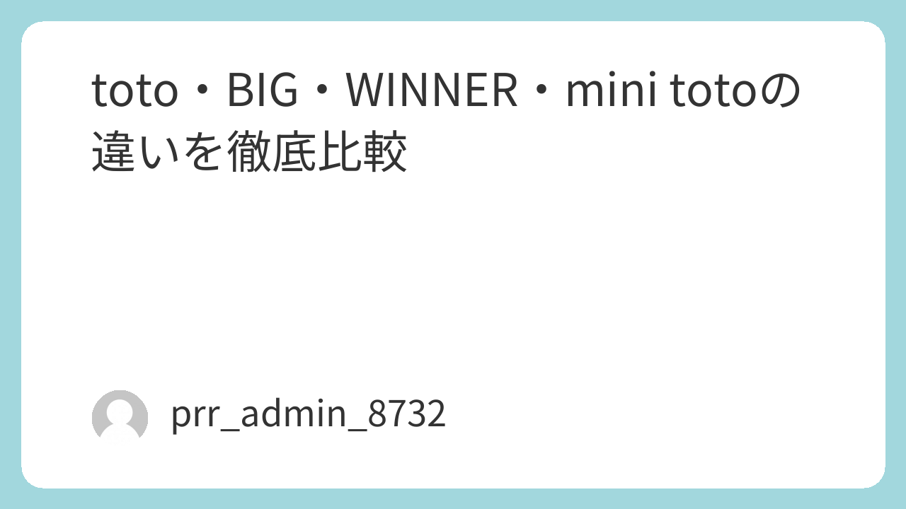 まずは4種類のスポーツくじの概要を整理する。 種類 予想内容 試合数 価格 特徴 当せん金の目安 toto 勝ち/引き分け/負け 13試合 100円 自分で予想する王道 最大約5億円(キャリー有) mini toto 勝ち/引き分け/負け 5試合 100円 当たりやすいライト版 約1万円前後 BIG 勝敗をランダム選択 14試合 100〜300円 完全運任せの宝くじ型 最大6〜12億円 WINNER スコア/点差/優勝予想 1試合 200円 オッズ方式・バスケ対応 最大5億円(理論値)