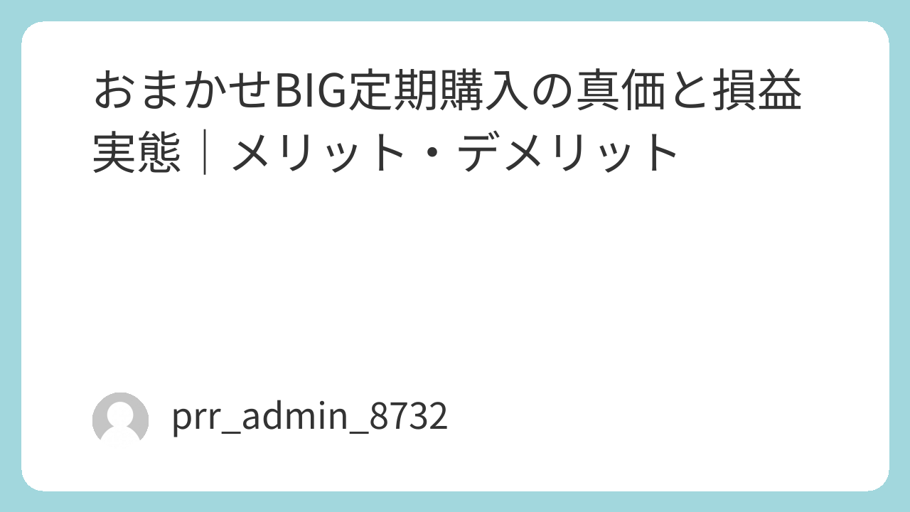 おまかせBIG定期購入は、手軽で楽しく、ポイント還元も魅力的です。しかし、期待値の観点では長期的にマイナスが確定しており、投資目的で続けるべきではありません。