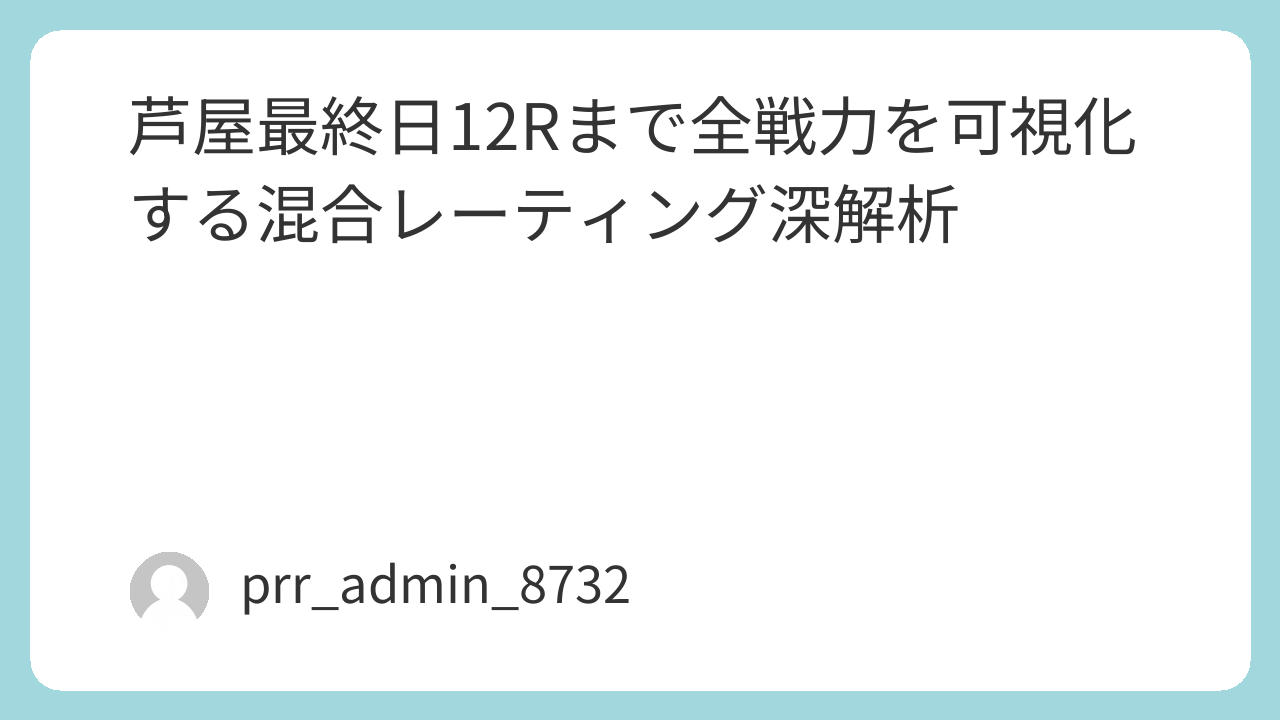 を統合した MR(Mixed Rating)=総合勝負指数 を用いて、各レースの勝負度・展開・狙い目を深掘りする。