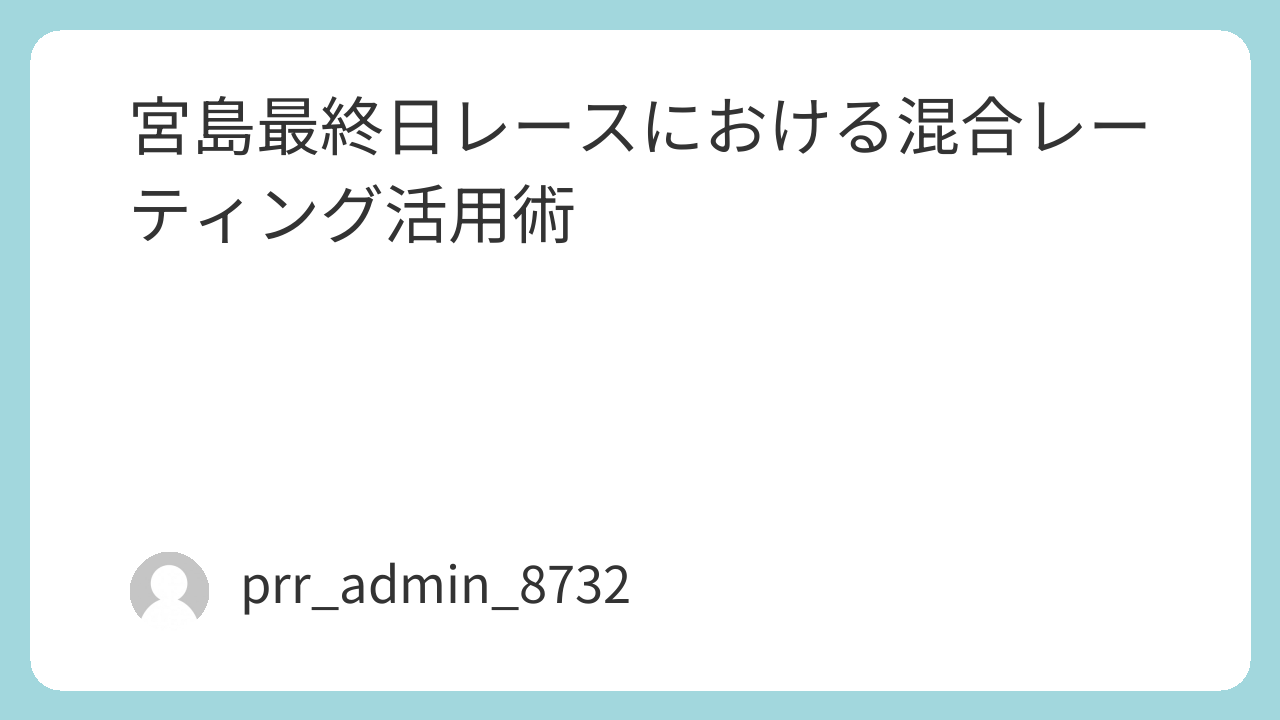 混合レーティングを活用し、あなた自身の判断軸を育てながら、健全で長く続けられる競艇ライフを楽しんでいただければ幸いです。