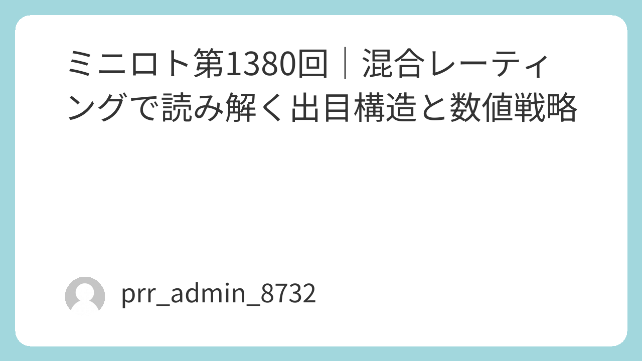 重要なのは、「外れるリスク」を常に意識することです。混合レーティングはレースの構造を理解するツールであって、結果を保証するものではありません。外れたレースを振り返り、「なぜ指数と結果が乖離したか」を分析することで、次回の精度が上がります。