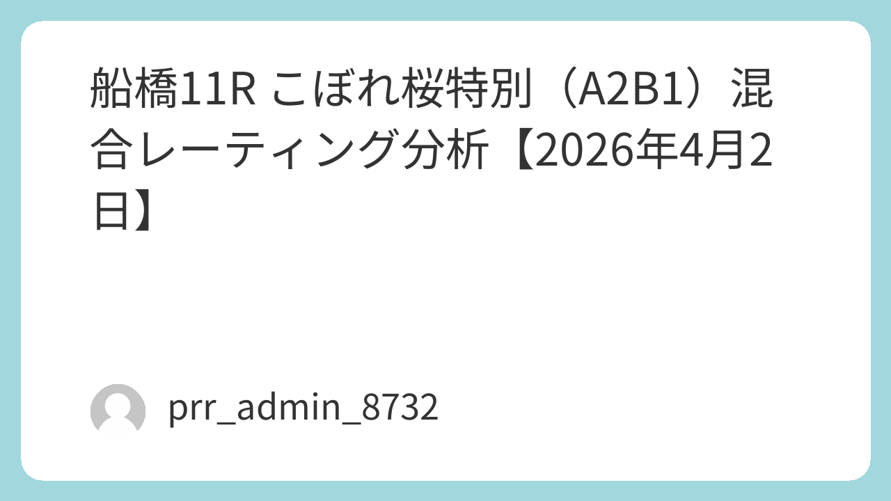船橋ダート1800mで行われる「こぼれ桜特別(A2B1)」は、クラス混合戦特有の“構造的歪み”が顕著に表れるレースである。単純な能力比較では見抜けない「クラス差・斤量差・展開差」が複雑に絡み合い、混合レーティング(MRA)の真価が問われる一戦と言える。