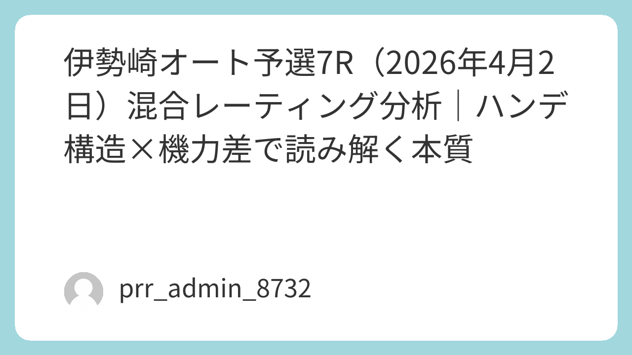 本記事では、伊勢崎オートレース予選7R(3100m)を対象に、「混合レーティング分析(MRA)」の観点からレース構造を徹底解析する。単なる着順予測ではなく、ハンデ構造・試走タイム・直近パフォーマンス・ST精度を統合し、“確率構造の歪み”を可視化する。