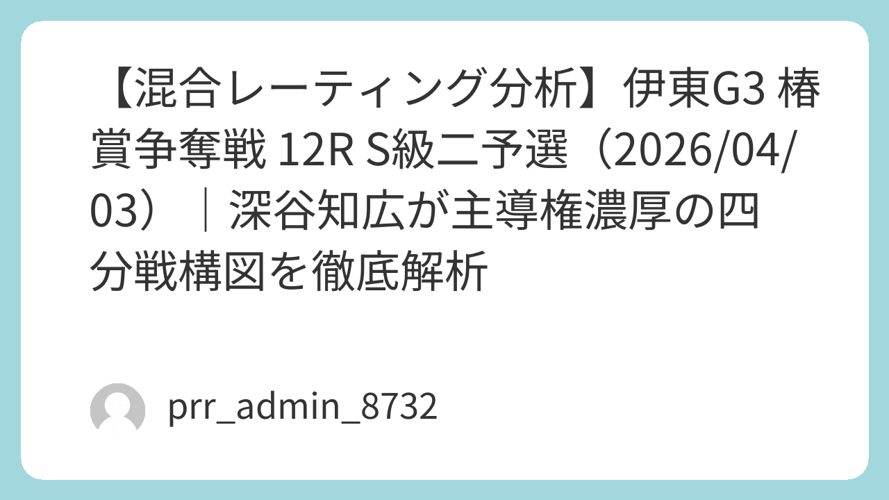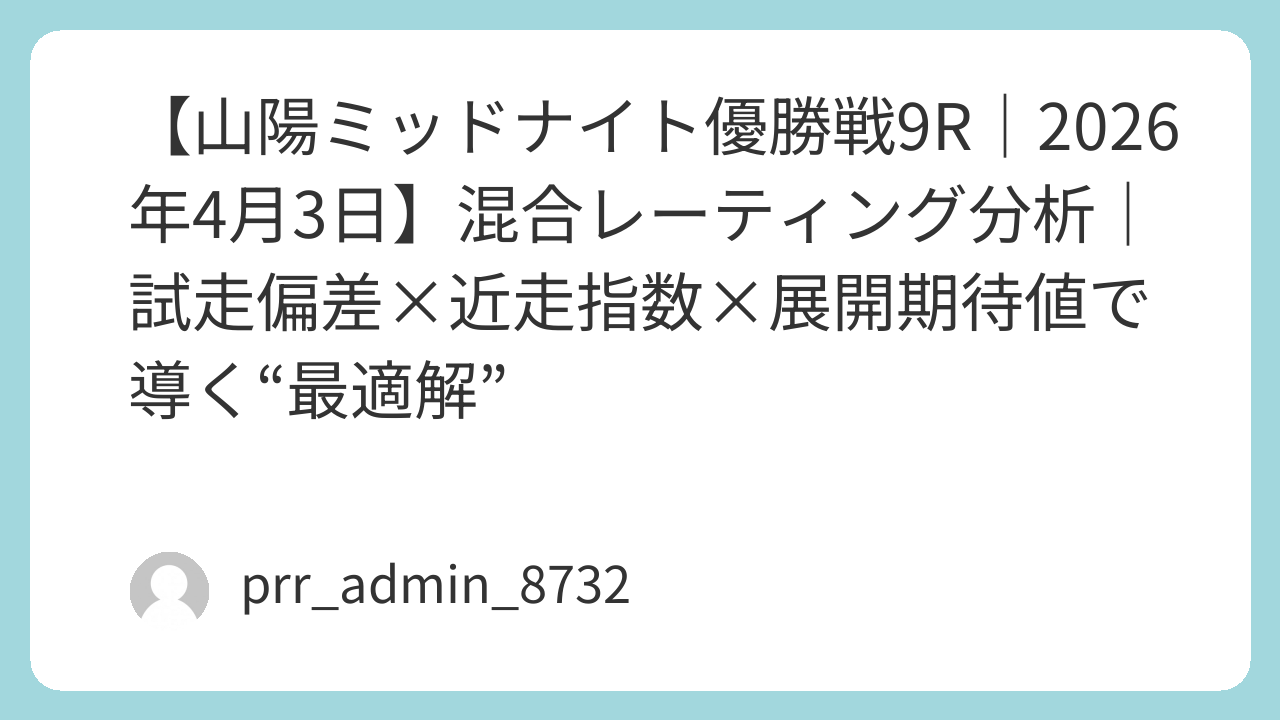 本稿では、オートレース予想における最重要指標である 試走タイム・偏差・近走安定度・湿走適性・スタート指数・位置取り期待値 を統合した 混合レーティング(MR:Mixed Rating) を用いて、レース全体の構造を解析する。