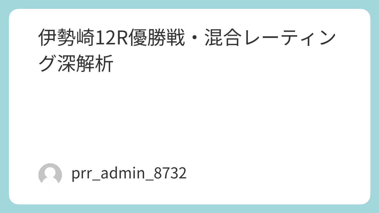 本記事の混合レーティングは、画像情報・統計データ・展開予測を統合した実戦的な分析であり、 予想精度向上に役立つ内容となっている。 今後もレースごとにMRを更新し、より精度の高いデータ分析を提供していく。